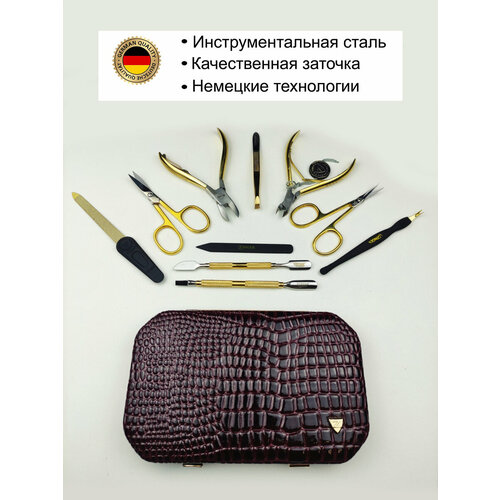 Маникюрный набор MSFE-804 G, ZINGER, 10 предметов, бордовый крокодил, инструмент золото/серебро: сравнение цен, характеристики, фото, актуальное наличие и цены.