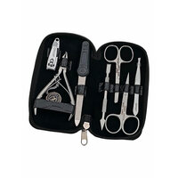 Стильный и удобный мужской маникюрный набор Zinger 8105 — идеальный выбор для повседневного и дорожного ухода. Все инструменты изготовлены из прочной нержавеющей стали марки AISI 420 (40Х13) с термической закалкой, что обеспечивает их износостойкость, упругость и долговечность.