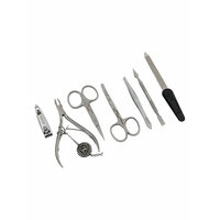 Особенность комплектации — безопасные ножницы с закругленными концами, которые подойдут не только для подстригания ногтей, но и для аккуратного ухода за волосками в области носа и усов.