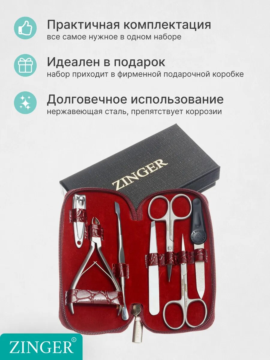 Купить Маникюрный Набор Zinger на молнии MS-7105, 7 предметов, красный чехол с доставкой по всей России. Маникюрный Набор Zinger на молнии MS-7105, 7 предметов, красный чехол: сравнение цен, характеристики, фото, актуальное наличие и цены.