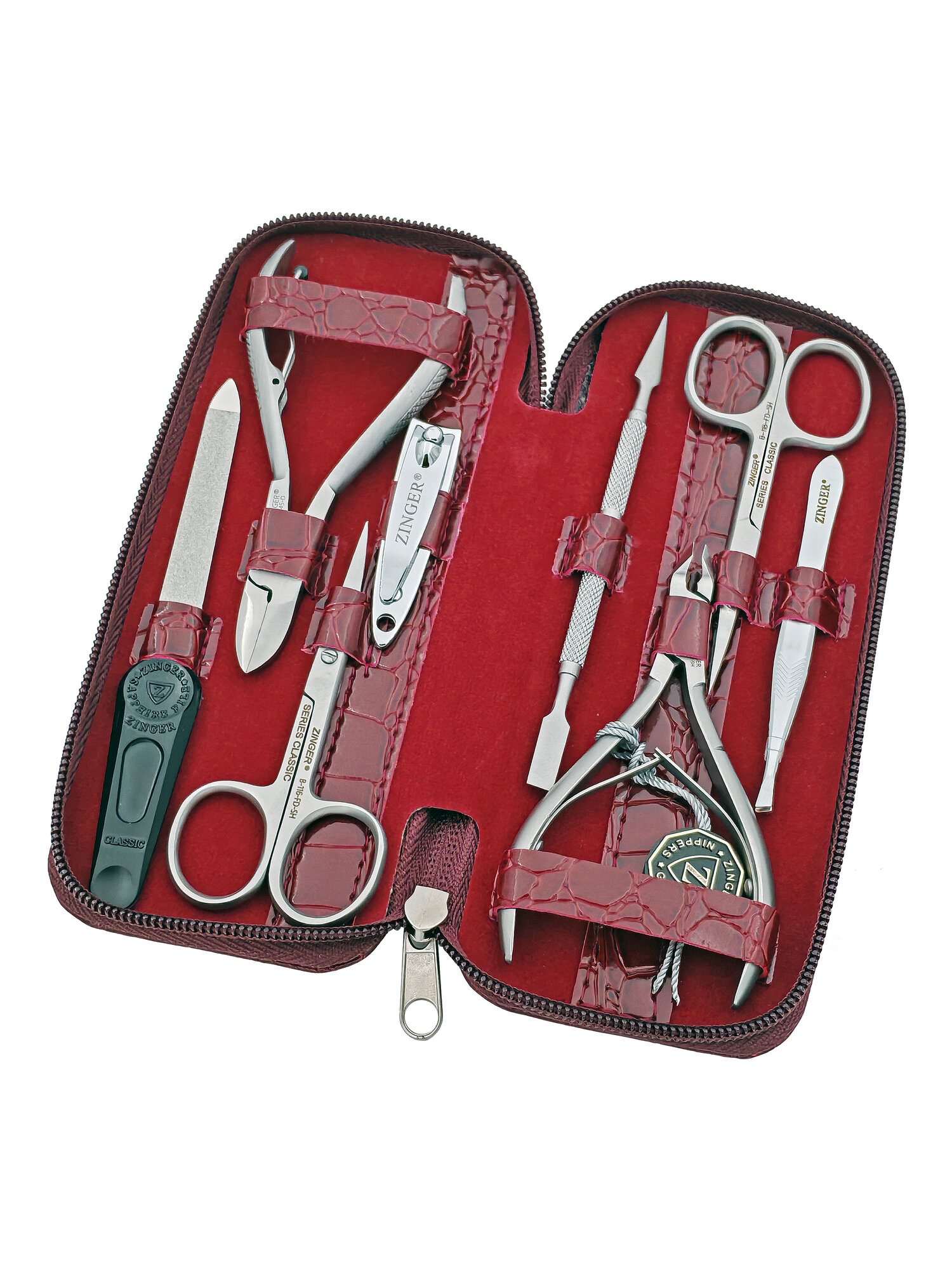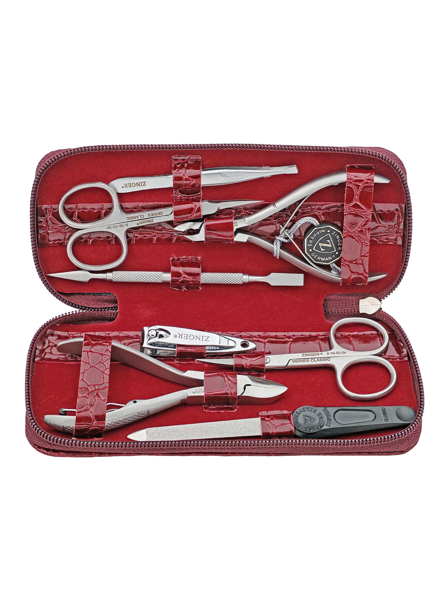 Многофункциональный маникюрный набор Zinger 7106 — это удобное решение для ухода за ногтями в домашних условиях и в поездках. Все инструменты изготовлены из нержавеющей стали марки AISI 420 (40Х13), которая отличается прочностью, устойчивостью к коррозии и длительным сроком службы. Надёжный футляр на молнии из эко-кожи с мягкой внутренней отделкой из велюра надёжно защищает инструменты при хранении и транспортировке.
