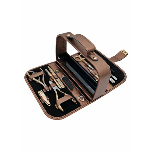 Маникюрный набор Zinger MS-1101 BG, 12 предметов, натуральная кожа, позолоченный/бронзовый