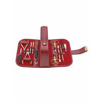 Маникюрный набор Zinger MS-1101 BG, 12 предметов, натуральная кожа, позолоченный/малиновый