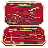 Стильный и солидный набор инструментов для маникюра и педикюра Zinger MSFE-804 G в футляре, верхняя часть которого выполнена из натуральной кожи, а внутренняя из велюра. Инструменты выполнены и высококачественной стали, кусачки и ножницы профессионально заточены в ручную. Технология закалки позволяет сочетать необходимую упругость и высокую твёрдость металла. Вся серия заточена вручную, по стандартам мастеров маникюра: с дополнительной обработкой лезвий и полировкой кончиков. Категория заточки - 3. Заточки хватает на 3-4 года активного домашнего использования или 1 год профессионального использования. Комплектация набора позволяет использовать его не только в домашних условиях, но и для выполнения профессиональных маникюрных и педикюрных работ.
