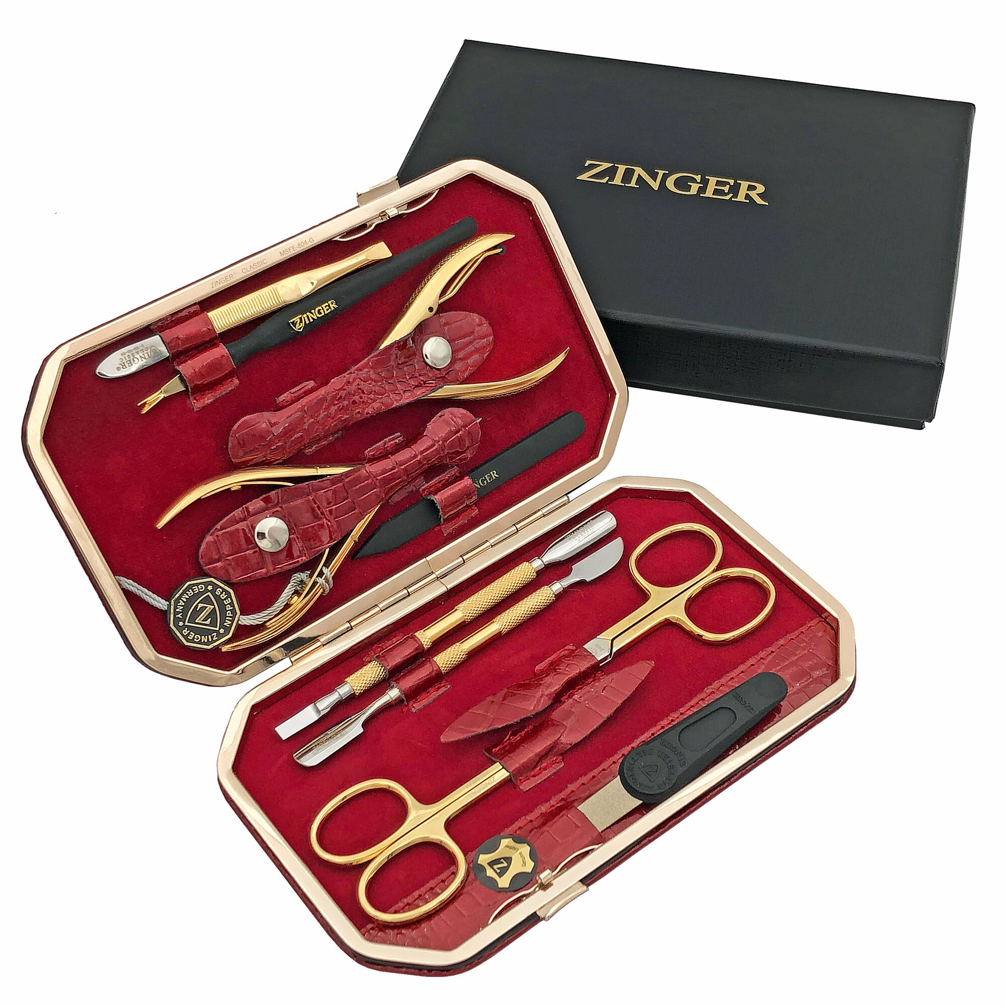 Купить Маникюрный набор Zinger MSFE-804 G, 10 предметов, позолоченный/красный крокодил с доставкой по всей России. Маникюрный набор Zinger MSFE-804 G, 10 предметов, позолоченный/красный крокодил: сравнение цен, характеристики, фото, актуальное наличие и цены.