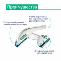 - Специальный угловой дизайн головки степлера;