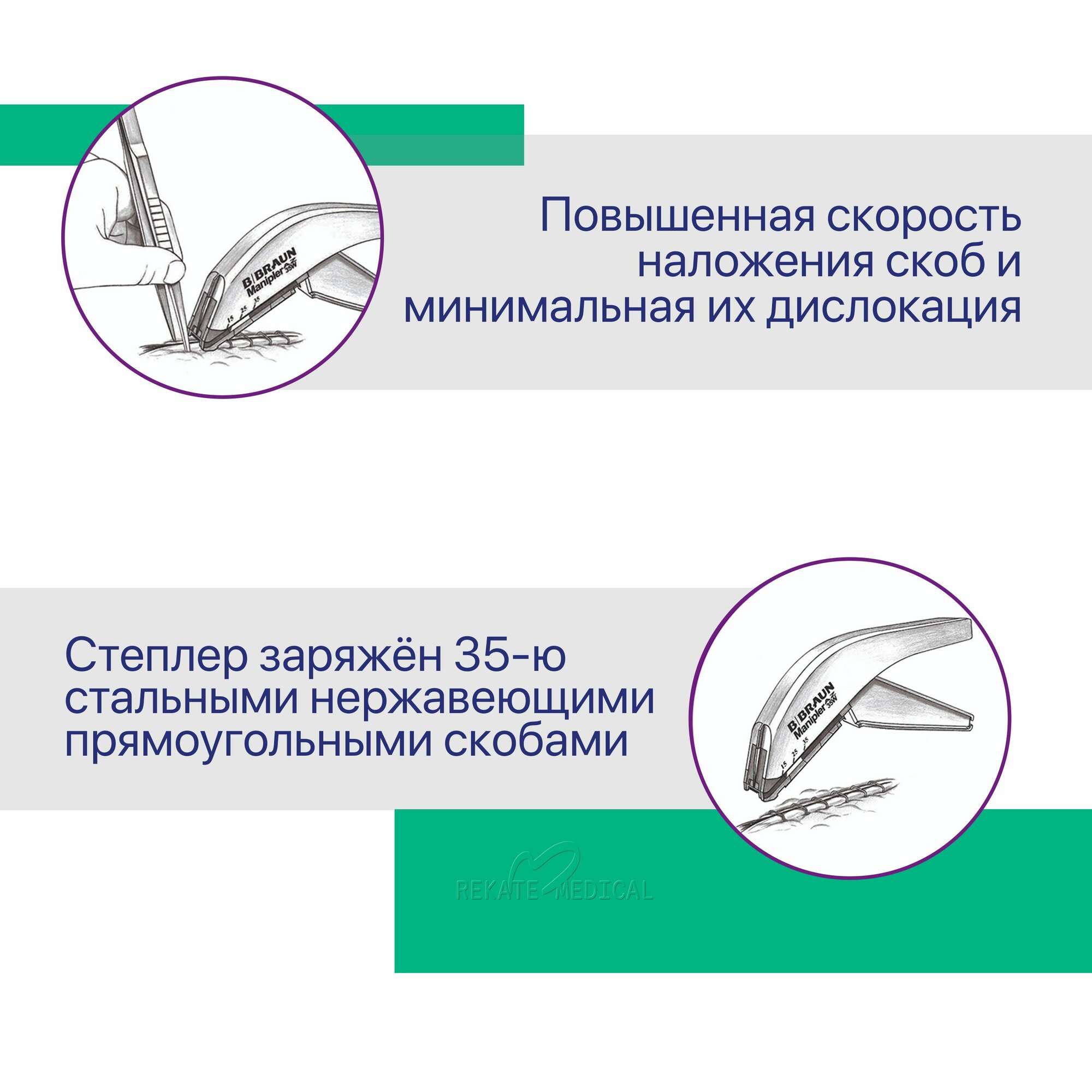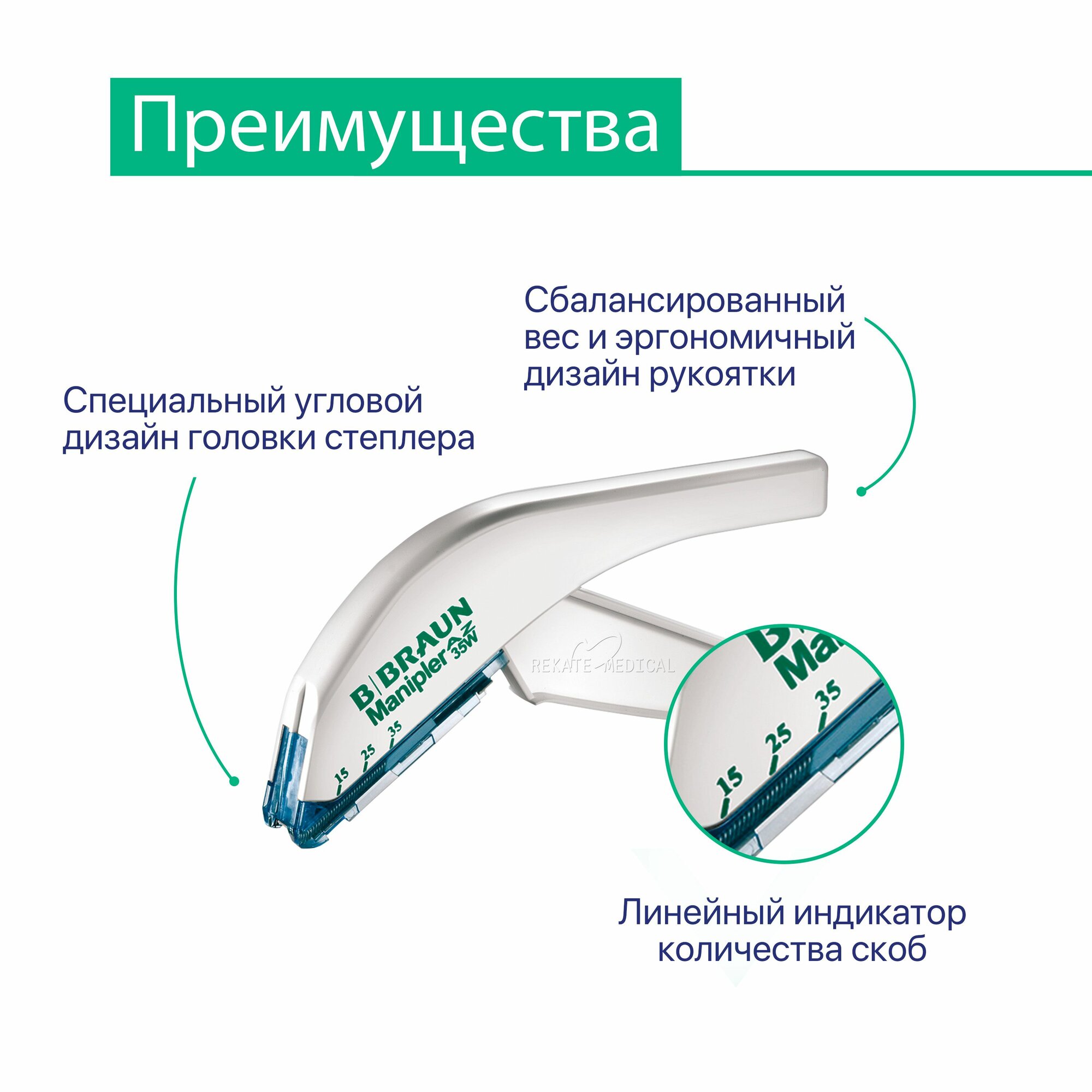 Manipler® AZ - представляет из себя стерильный одноразовый кожный степлер для наложения 35 нержавеющих кожных скоб в конце любого хирургического вмешательства. Обеспечивает надежность и безопасность снижая тем самым риск для пациента.