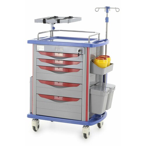 размер ящиков тип 1-2шт. (длина*ширина*высота) - 680*440*115 мм; размер ящиков тип 2-2 шт. (длина*ширина*высота) - 680*440*120 мм; размер ящиков тип 3-1 шт. (длина*ширина*высота) - 680*440*205 мм; размер столешницы (ширина*длина) - 450*470 мм, размер контейнера 1,2 (длина*ширина*высота) - 170*155*240 мм; размер открытого контейнера (длина*ширина*высота) - 460*320*150 мм; размер корзины для медицинских отходов (длина*ширина*высота) - 130*125*190 мм; высота инфузионной стойки 300-740 мм; размер навесной полки с держателем (длина*ширина*высота (от и до) - 360*120*130-340 мм; размер подноса (длина*ширина*высота) 370*320*15 мм; высота боковых ограждений - 85 мм; расстояние между ящиками 1 мм; диаметр колес 80 мм; наличие тормозов - диагональные; материал изделия: алюминий, нержавеющая сталь, АБС-пластик, полиуретан