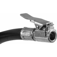 Пистолет для подкачки шин TНORVIK применяется для контроля давления, сброса и подкачки при обслуживании пневматических шин колесных транспортных средств, строительной и сельскохозяйственной техники в диапазоне рабочего давления от 0 до 12 bar (12,24 кгс/смкв.), персоналом, имеющим соответствующую квалификацию, знакомымс правилами техники безопасности, условиями эксплуатации и навыками работы с инструментом подобного типа. Изделие укомплектовано аналоговым стрелочным манометром класса 2.5 ГОСТ 2405-88, снабженного механизмом деформационного типа. Двушкальная градуировка позволяет контролировать значение в величинах PSI (внутренняя шкала красного цвета) или BAR (внешняя шкала). Манометр снабжен резинополимерным протектором, предотвращающим повреждение прибора при неосторожном обращении.