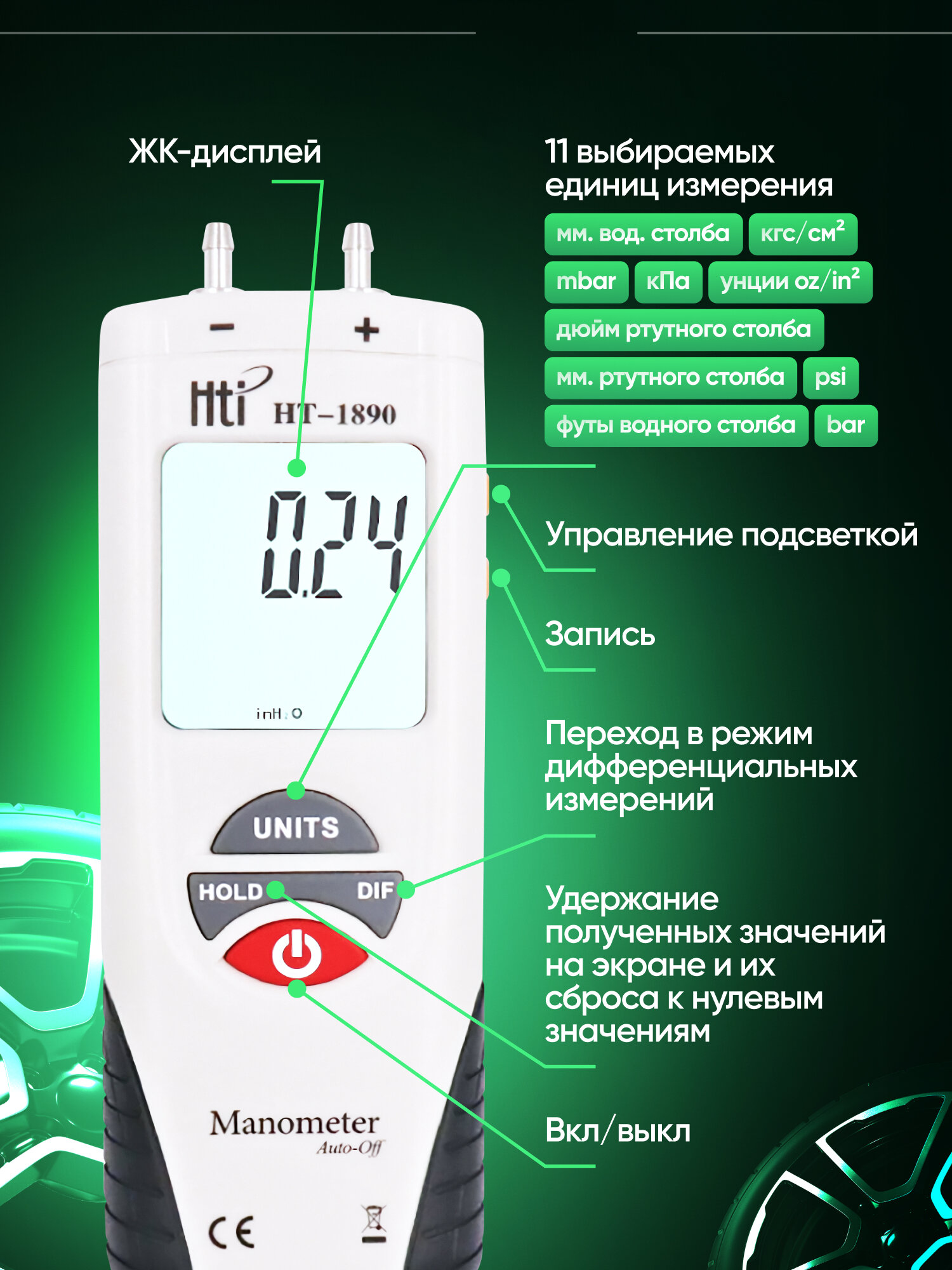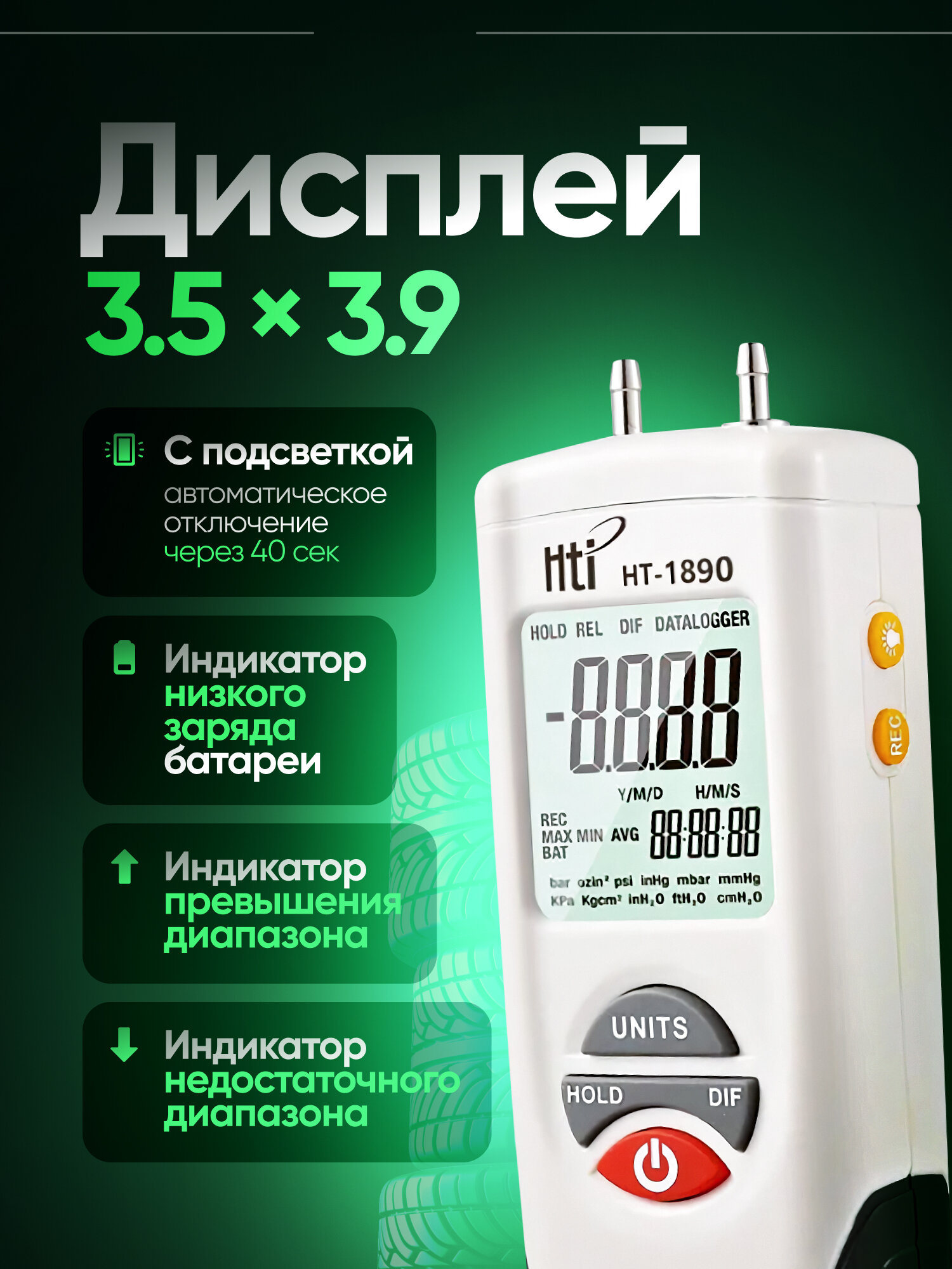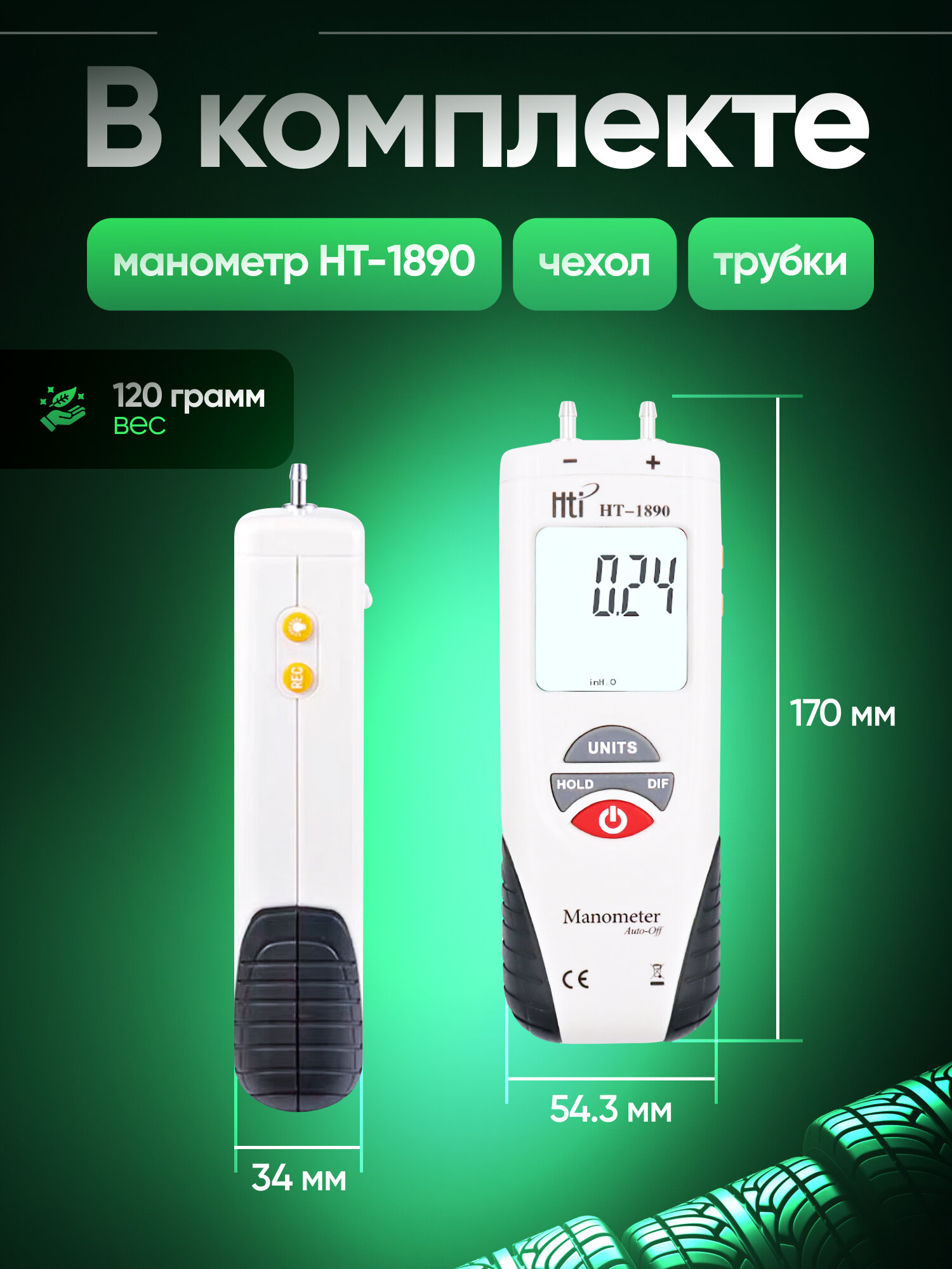 Купить Цифровой Манометр HT-1890, для измерения дифференциального давления воздуха с доставкой по всей России.