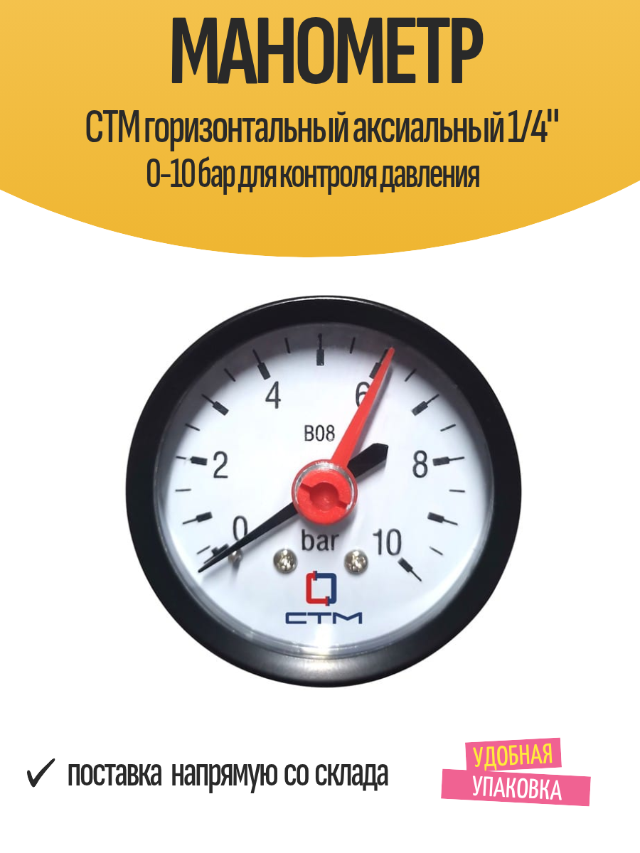 Купить Манометр СТМ горизонтальный аксиальный 1/4″ 0-10 бар для контроля давления с доставкой по всей России. Манометр СТМ горизонтальный аксиальный 1/4″ 0-10 бар для контроля давления: сравнение цен, характеристики, фото, актуальное наличие и цены.