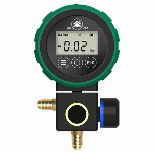Манометрическая станция представляет собой одновентильный манометрический цифровой коллектор, применяется для измерения давления в холодильных системах, работающих на хладагентах: R134А, R1234yf , R22, R32, R404A, R407C, R410A, R507, R600A. В комплекте два зарядных шланга 90 см, адаптер для R410A, набор продается в кейсе.