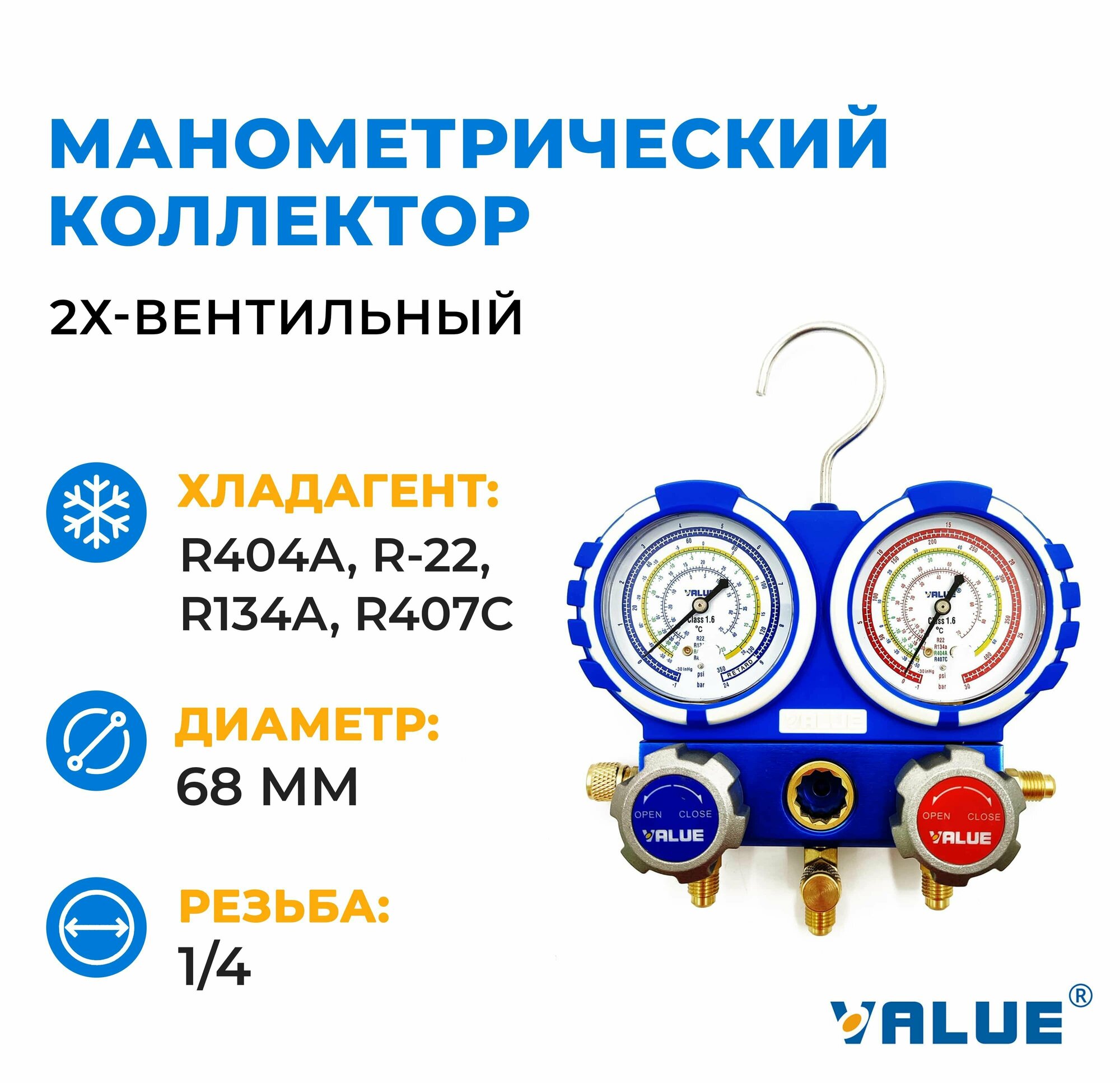 Манометрический коллектор Value VMG-2-R22-B-03 двухвентильный, под R-404a, R-22, R134a, R407c: сравнение цен, характеристики, фото, актуальное наличие и цены.