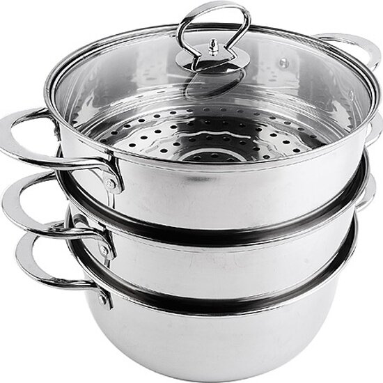 2-х уровневая мантоварка выполнена из высококачественной нержавеющей стали с индукционным капсульным дном. Мантоварка - это специальная многоуровневая кастрюля с помощью которой можно готовить блюда на пару. Через отверстия в днищах ярусов происходит доступ пара от кипящей воды к приготовляемым продуктам. Идеально подходит для блюд национальной кухни: мант, поз, паровых пельменей и т. п. Кроме этого, на пару можно готовить множество других полезных диетических блюд. Крышка мантоварки оснащена удобной металлической ручкой и окошком из стекла на металической крышке, через которую можно наблюдать за процессом готовки. Мантоварка имеет 2-а съемных яруса. Нижнюю часть мантоварки можно использовать как обычную кастрюлю с крышкой. Подходит для всех типов плит, включая индукционные. Подходит для мытья в посудомоечной машине. Мантоварка 4 пр МВ ; Материал: нержавеющая сталь 201/410; Диаметр: 32 см (7,6 л). Высота нижней часть: 13,2 см; Высота ярусов: 8 см. Крышка: сталь, стекло. Ручки: метал. Дн.