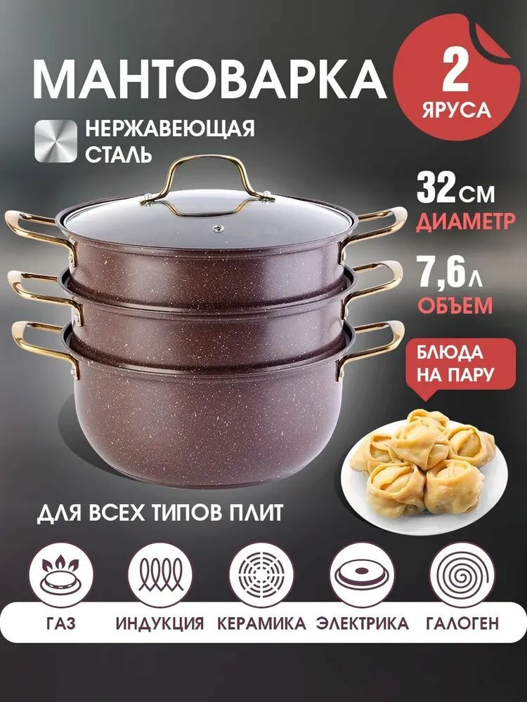 Купить Мантоварка 32см 2-х ярусная с доставкой по всей России. Мантоварка 32см 2-х ярусная: сравнение цен, характеристики, фото, актуальное наличие и цены.