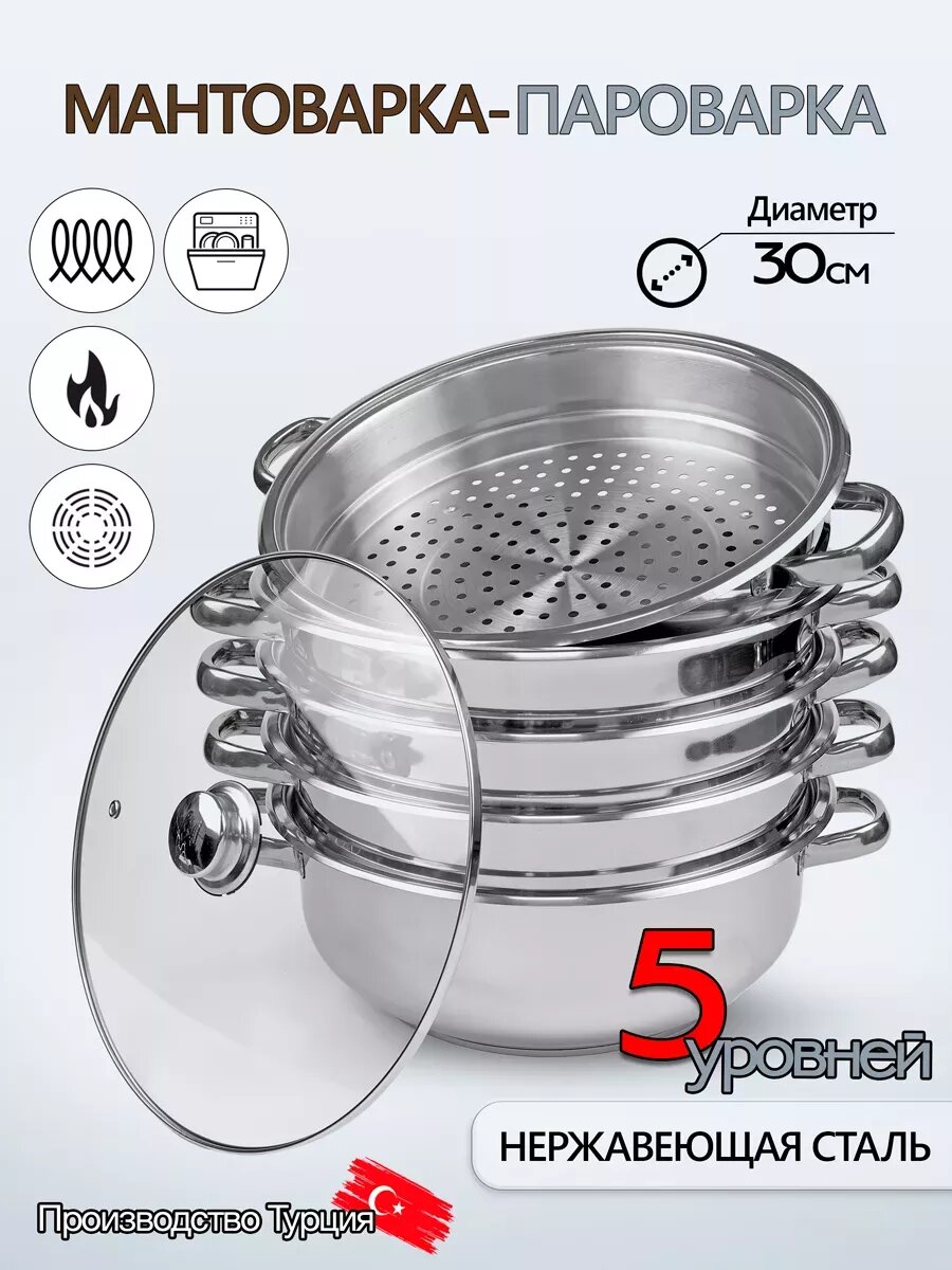 Парока - Мантоварка из нержавеющей стали 5 ярусов d-30см 6 литров. с крышкой - это идеальный выбор для тех, кто ценит комфорт и функциональность в приготовлении пищи. Эта мантоварка обладает превосходными качествами, такими как надежность, долговечность и удобство использования.