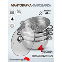 Купить Мантоварка из нержвающей стали со стеклянной крышкой диаметр 28 см. 4 яруса с доставкой по всей России.