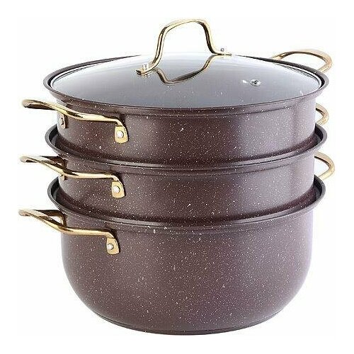 Набор 4 предмета: основная кастрюля с крышкой, 2 съемных яруса. Основная кастрюля: диаметр: 32 см, диаметр дна 23 см, высота стенок 13 см, высота с крышкой 20 см. Съемный ярус: диаметр 32 см, диаметр дна 29 см, высота 9 см. Размеры в собранном виде: диаметр 32 см, диаметр дна 23 см, высота с крышкой 37 см, высота борта без крышки 29 см, длина с ручками 41 см.