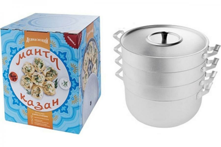 Для приготовления любимого многими блюда у нас есть отдельное предложение. Манты-казан отличается надежным корпусом, который подходит для использования на плитах любого типа, кроме индукционного. Объем 6 литров, позволит собрать настоящее семейное застолье. Экспериментируйте с новыми рецептами: манты с тыквой; с мясом и плавленым сыром; из рисового теста или сладкие с творогом – теперь угодить можно каждому члену большой семьи. Манты-казан выполнен из пищевого алюминия и оснащен 3 дисками. Данное изделие производится на заводе "Демидовский" в г. Каменск-Уральский.
