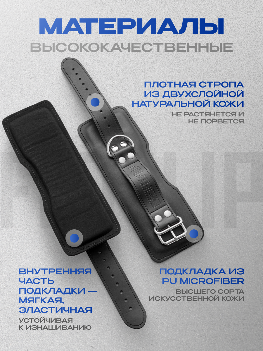 • Натуральная кожа. Лента изготовлена из двух слоёв натуральной кожи толщиной 4 мм, устойчивого к износу и нагрузкам, что гарантирует их долговечность и сохранение первоначального вида даже при интенсивных тренировках;