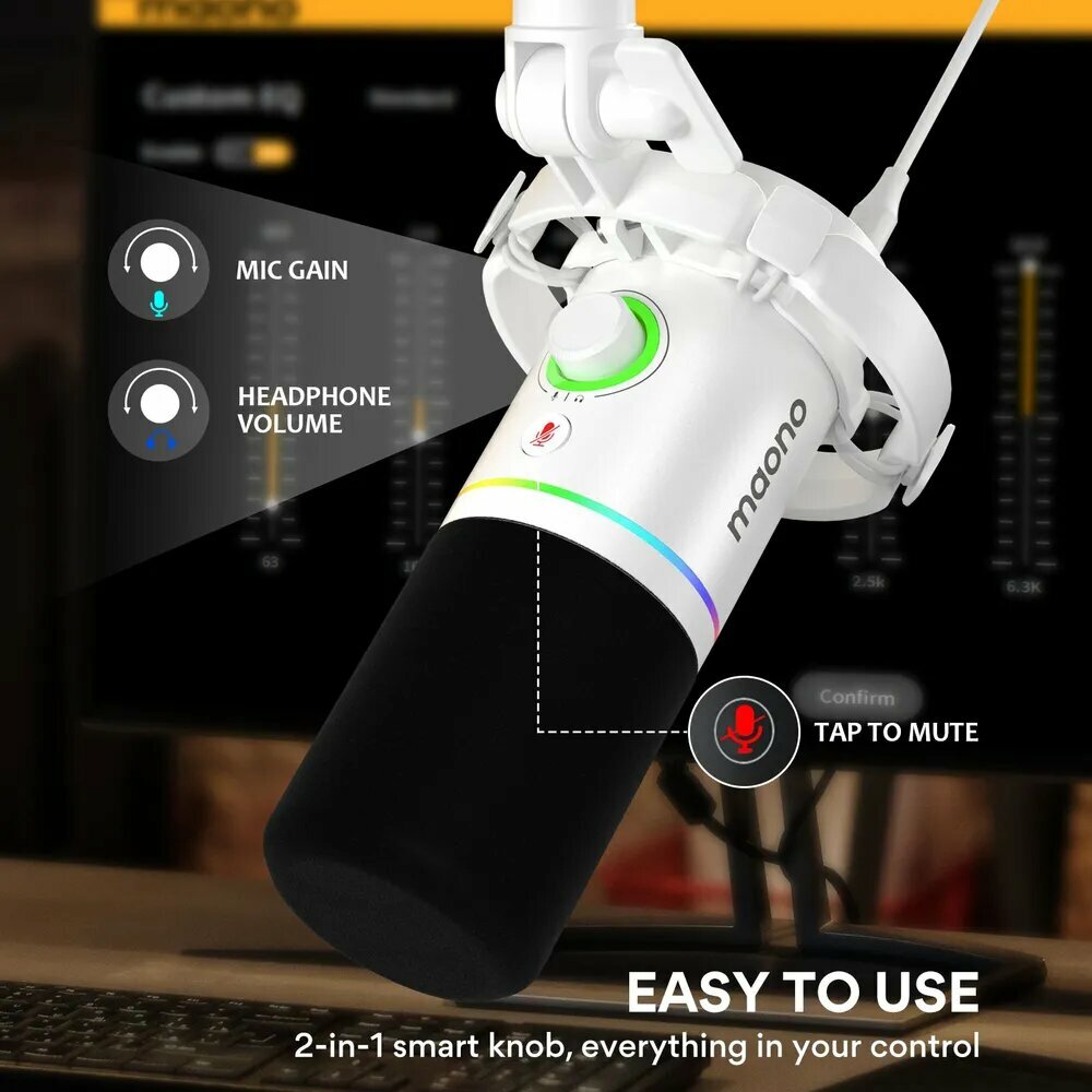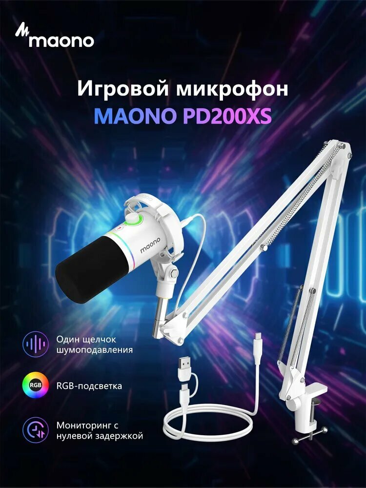 Купить Микрофон MAONO PD200X для подкастов, USB, XLR, ветрозащита, подсветка, белый с доставкой по всей России.