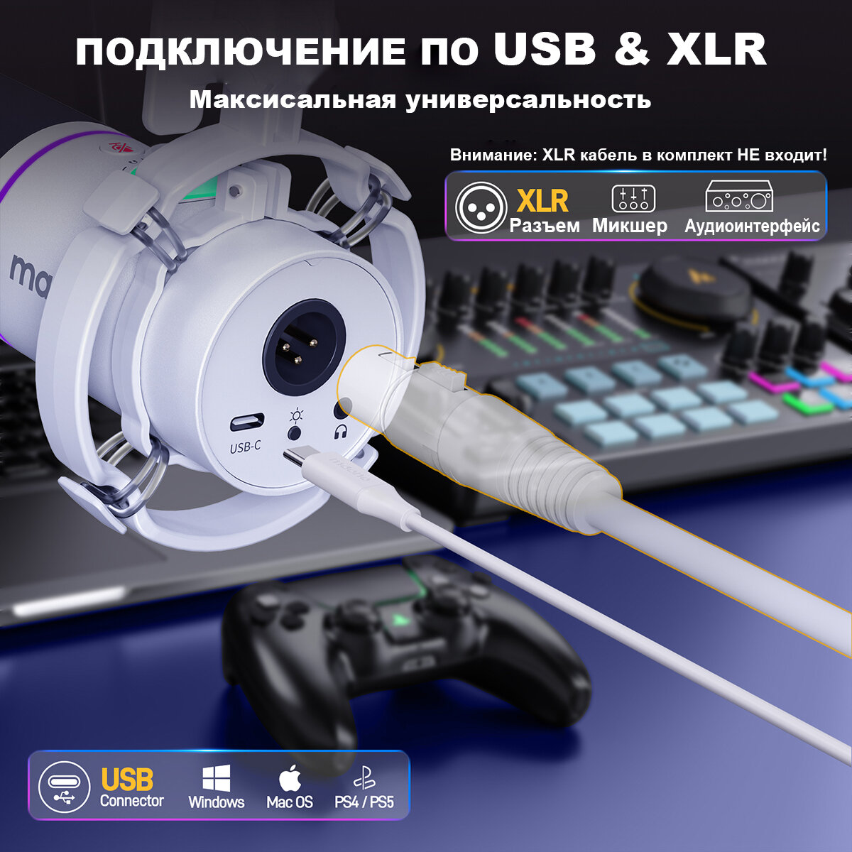Микрофон MAONO PD200XS, USB/XLR динамический с пантографом и RGB подсветкой, белый: сравнение цен, характеристики, фото, актуальное наличие и цены.