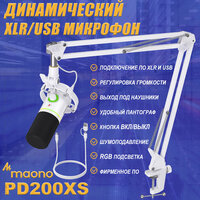Купить Микрофон MAONO PD200XS, USB/XLR динамический с пантографом и RGB подсветкой, белый с доставкой по всей России.