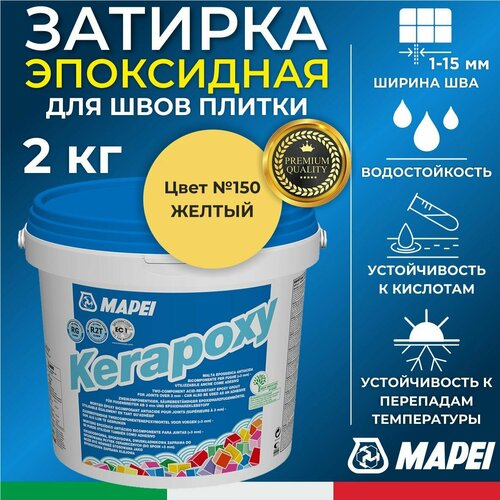 Купить MAPEI Эпоксидная затирка для плитки Kerapoxy 150 Желтый, 2 кг — Двухкомпонентная высокостойкая клей-фуга для плиточных швов от 1 мм/ кислотостойкая/ противогрибковая/ водонепроницаемая с доставкой по всей России.