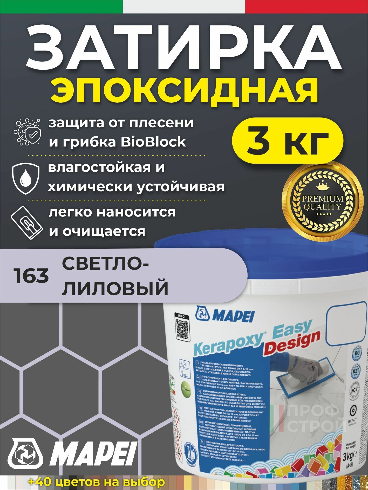 Купить MAPEI Эпоксидная затирка для плитки Kerapoxy Easy Design 163 Светло-лиловый, 3 кг Двухкомпонентная стойкая клей-фуга для плиточных швов от 1 мм/ кислотостойкая/ противогрибковая/ водонепроницаемая с доставкой по всей России.