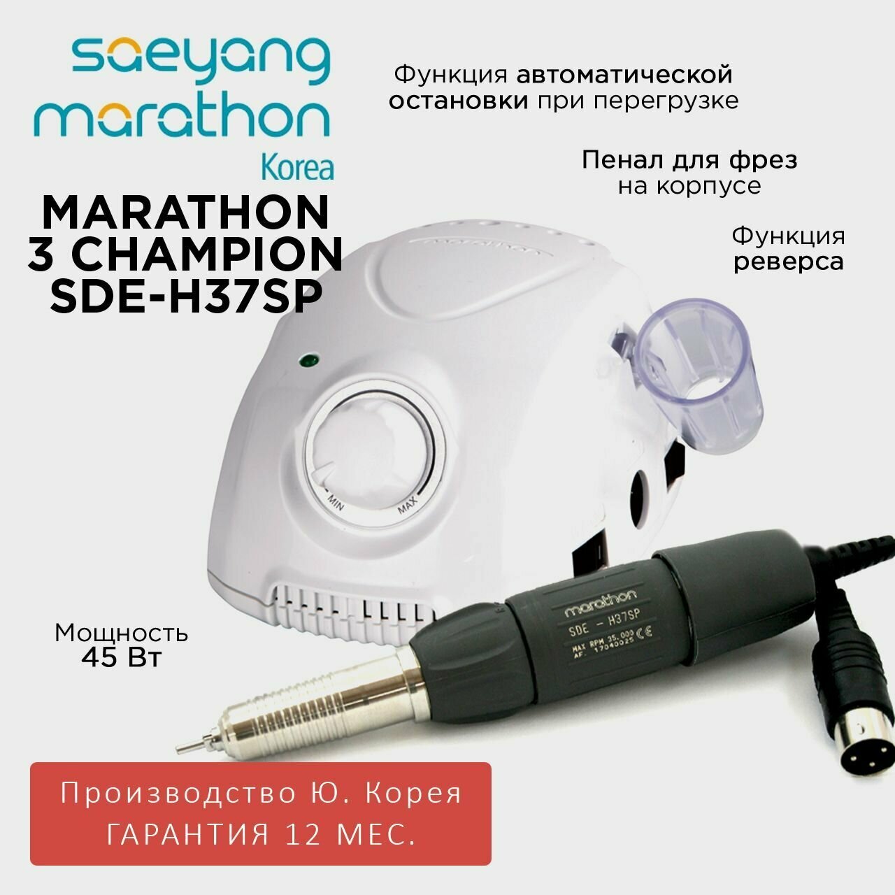Купить Marathon 3 Champion SDE-H37SP без педали Ю. Корея 35000 об/мин 3.2 Н/см аппарат для маникюра с доставкой по всей России.