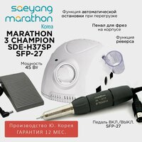 Marathon 3 Champion New - аппарат для маникюра с наконечником SDE-H37SP, с педалью включения SFP-27. Скорость от 0 до 35000 об/мин, крутящий момент 3.2 Н/см, мощность 45 Вт, производство Saeyang Microtech (Ю. Корея) с гарантией в официальных сервисных центрах по всей России.