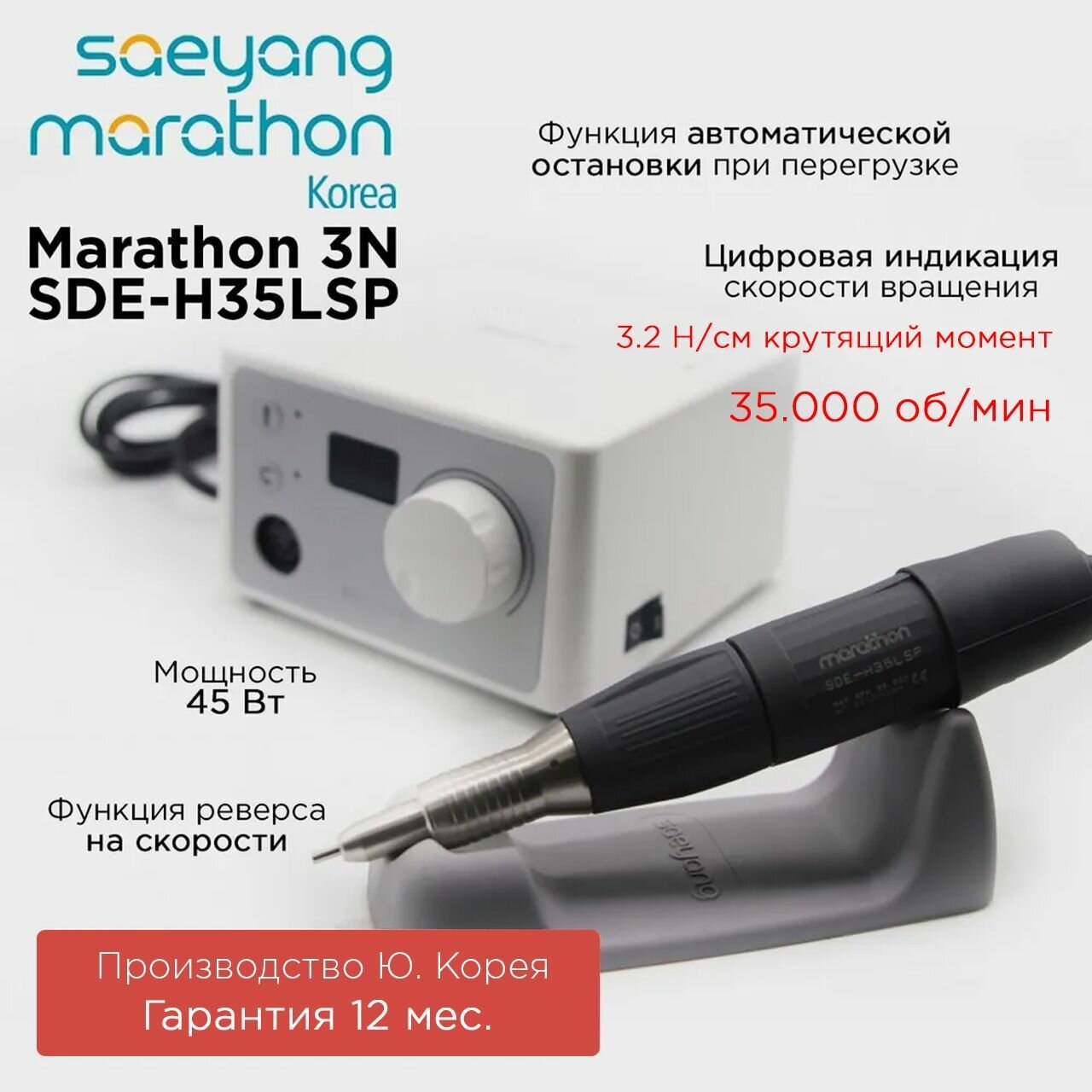Оригинальный Marathon 3N без педали - косметологический аппарат для маникюра с наконечником H35LSP, 35000 об/мин, крутящий момент 3.2 Н/см, мощность 45 Вт, производство Saeyang Microtech (Ю. Корея) с гарантией в официальных сервисных центрах по всей России.