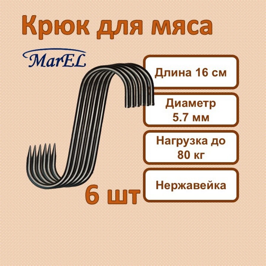 Купить «MarEl Крюк для мяса» — 6 шт, 16 см, 6 мм, заостренный с доставкой по всей России. «MarEl Крюк для мяса» — 6 шт, 16 см, 6 мм, заостренный: сравнение цен, характеристики, фото, актуальное наличие и цены.