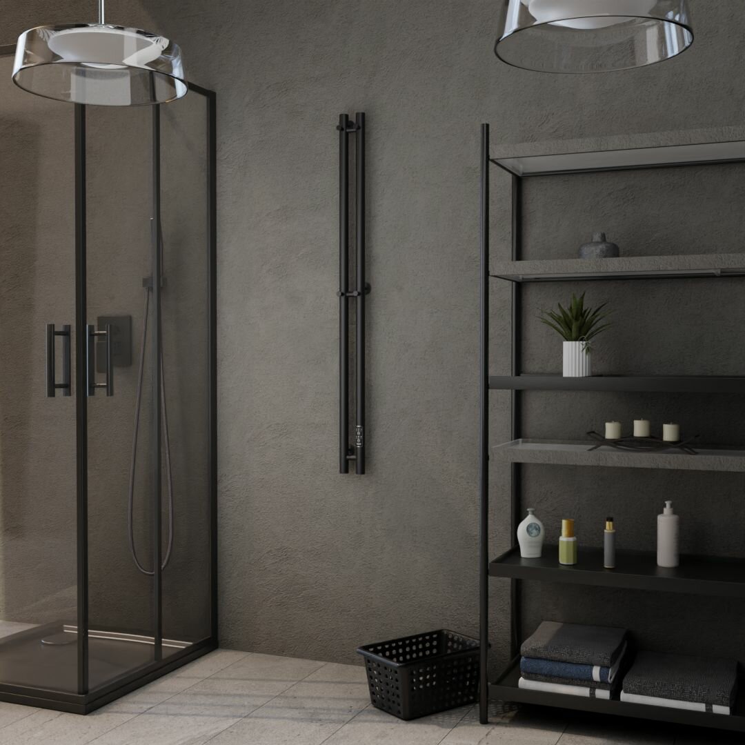 Маргроид полотенцесушитель электрический чёрный 120 х 9см с терморегулятором, вертикальный