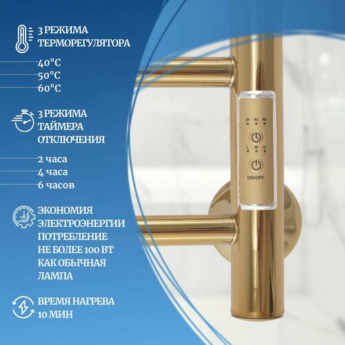 Купить Полотенцесушитель электрический золотой 600х530 мм лесенка, с таймером с доставкой по всей России.