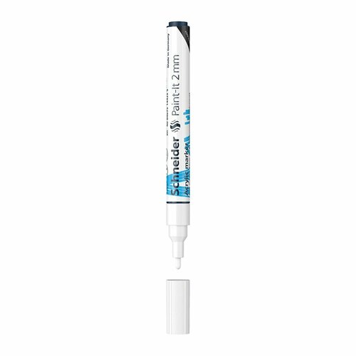 Schneider Paint-It 310 - акриловый маркер для творчества и хобби. Толщина линии – 2 мм, форма наконечника – пылевидная, цвет чернил - белый. Акриловые чернила на водной основе быстро сохнут, обеспечивают интенсивность цвета, высокие укрывные свойства и стойкость после высыхания. Не содержат ксилол и толуол. Подходит для работ на различных поверхностях: бумага, дерево, камень, гипс и т. д. Перед использованием маркер необходимо встряхнуть для смешивания и равномерной подачи чернил.