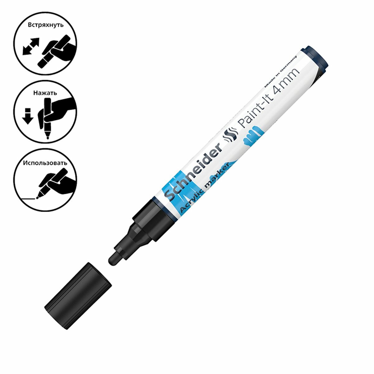 Купить Маркер акриловый Schneider Paint-It 320 (4мм, круглый, черный) (120201), 5шт. с доставкой по всей России.