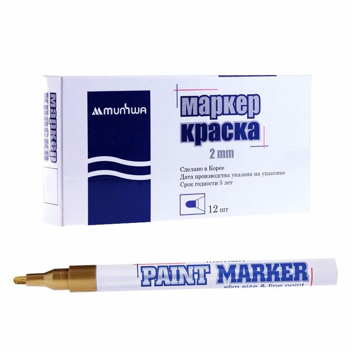 Купить Маркер-краска MunHwa Slim (2мм, золотистый, нитро-основа) алюминий/пластик (SPM-07), 12шт. с доставкой по всей России.