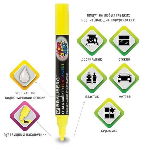 Купить Маркер меловой Brauberg Pop-Art (5мм, желтый) 8шт. (151528) с доставкой по всей России. Маркер меловой Brauberg Pop-Art (5мм, желтый) 8шт. (151528): сравнение цен, характеристики, фото, актуальное наличие и цены.