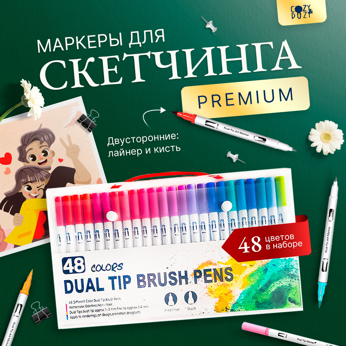 Купить Маркеры акварельные для скетчинга, линеры цветные, двусторонние для рисования, набор 48 цветов с доставкой по всей России.