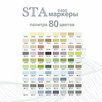 - Цветовая палитра имеет 80 уникальных естественных цветов, которые станут незаменимыми спутниками в творческом процессе любого архитектора, ландшафтного дизайнера или художника. Удобно брать сразу нужный цвет, поскольку цвет колпачка абсолютно идентичен цвету чернил.