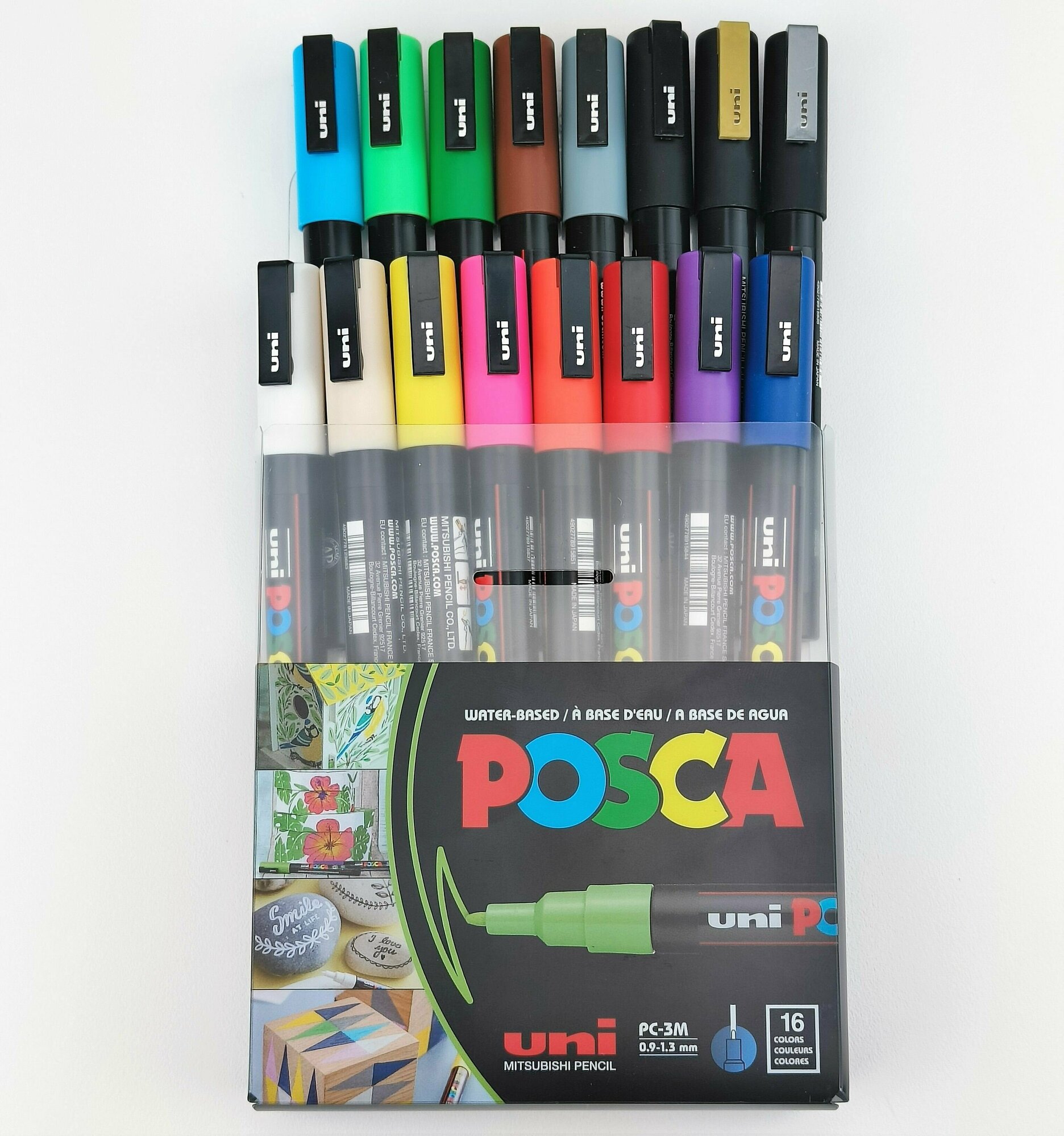 Маркеры UNI Posca PC-3M набор из 16 стандартных цветов толщина 0,9 — 1,3мм: сравнение цен, характеристики, фото, актуальное наличие и цены.