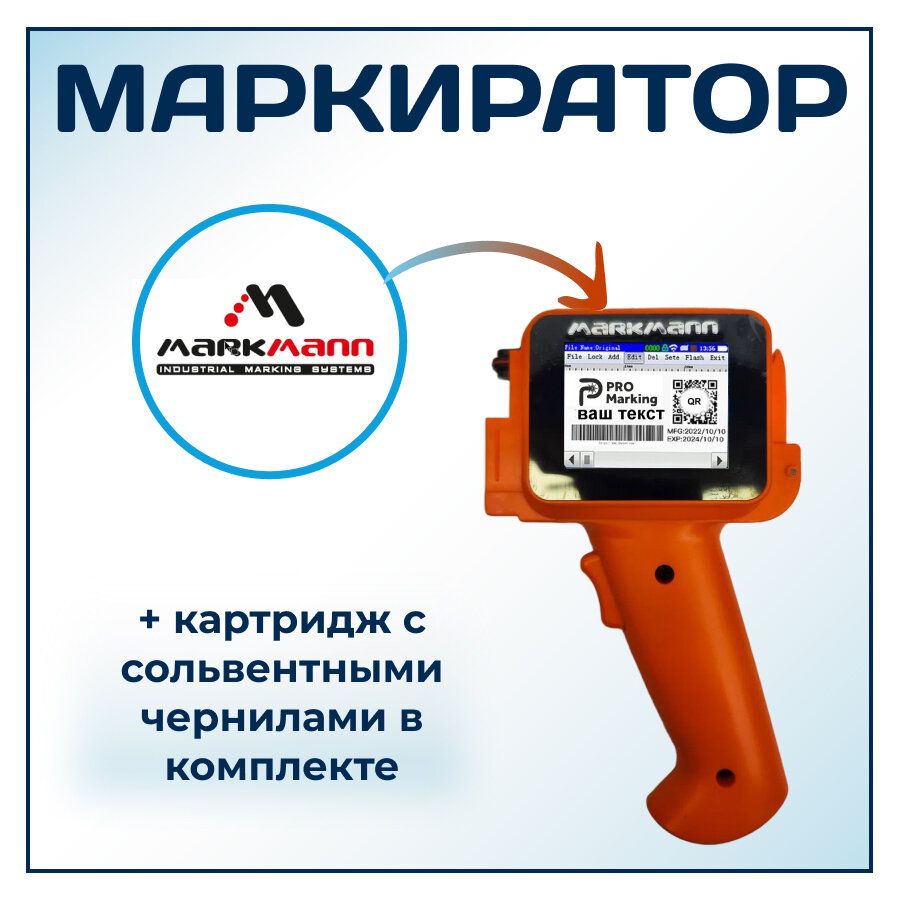 Маркиратор MarkMann UltraJet 1380 - это надежный высококачественный принтер с возможностью печати на русском языке кириллицей и ещё на 25 языках. Устройство без особых усилий и приспособлений может наносить маркировку на различные прямые и скругленные поверхности, такие как бутылки, баночки, коробки, пищевые пакеты, упаковки, сталь, ПВХ, трубы, дерево, листовой металл, бетон, стекло и ткань