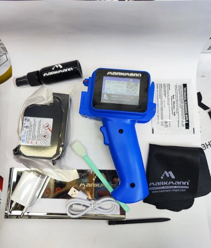 В комплекте с принтером идут картридж с сольвентными чернилами, зарядное устройство, стилус и инструкция по эксплуатации. MarkMann UltraJet 1380 прост в использовании и не требует специальных навыков для работы с ним.