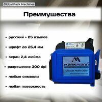 Принтер оборудован двойной печатающей головкой и экраном 2,4 дюйма, что обеспечивает удобство использования и контроля над процессом маркировки.