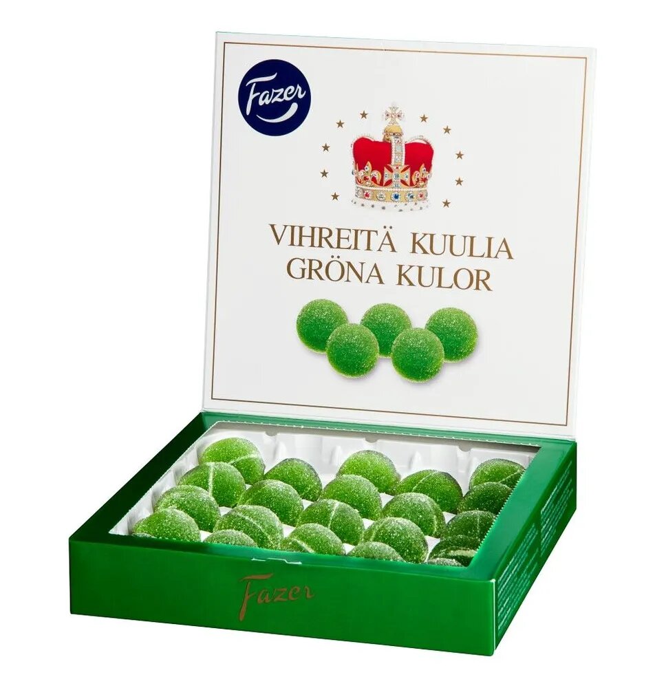 Мармелад Fazer "VIHREITA KUULIA" - это не просто лакомство, это настоящее произведение искусства. Зеленое фруктовое желе, созданное из натуральных ингредиентов, обладает насыщенным вкусом и ароматом.
