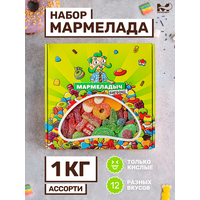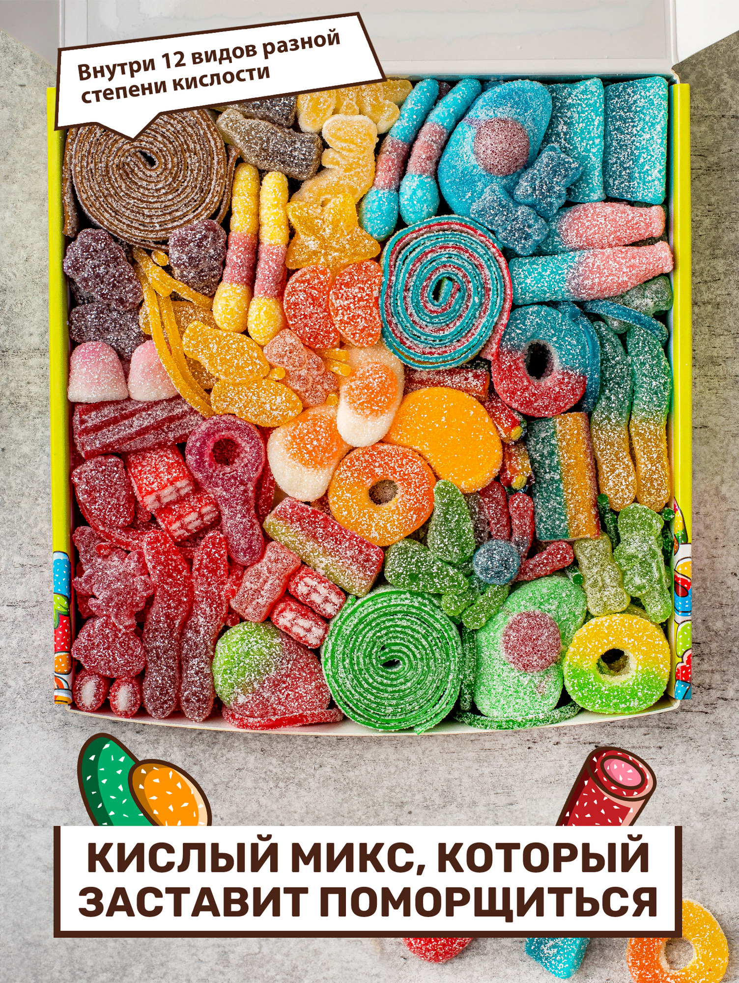 Купить Мармелад кислый жевательный, микс разных вкусов, подарочный новогодний бокс 1000г с доставкой по всей России.