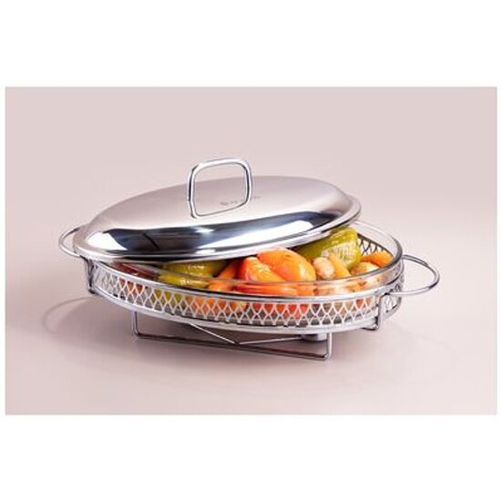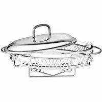 Стеклянную жаропрочную емкость можно использовать для запекания в духовом шкафу (максимальная температура нагрева до 400 С). хромированная подставка не подходит для мытья в посудомоечной машине.