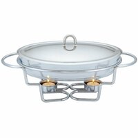 Мармит овальный В комплект входит овальный мармит из качественной нержавеющей стали Внутренняя чаша изготовлена из прочного жаростойкого стекла Крышка из нержавеющей стали Температура подогрева не более 260 градусов В мармите можно подавать любые горячие блюда: свечи на подставке будет подогревать чашу, сохраняя пищу горячей и ароматной. Объем мармита: 3,0 л. Размер: 46х26х13 см