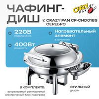 Купить Мармит (чафинг-диш) с подогревом Crazy Pan CP-CHD018S круглый, блок нагрева 400Вт, 220В, 6 литр, нерж, серебро, d39см-65 с доставкой по всей России.